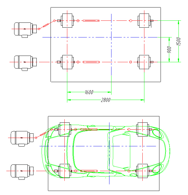 该设备核心振动机构设计采用双组独立机械式凸轮机构,为设备提供恒定可靠的正玄振动,同时还采润滑脂给设备各高速运动机构提供润滑环境,确保提高各机构在高速运动时的耐磨性和独特的抗冲击特性。 在控制部分,利用高速传感器实时跟踪数据,PLC实时将数据采集并在显示屏上以直接的高频正玄波或柱形动态在显示屏内呈现出来;利用高速位移传感器跟踪振动箱的振幅,将振幅数据以动态渐变的形式呈现在显示屏内; 以上数据跟踪显示不仅给广大客户提供一种有效直接的观察点检方式,也为设维护及观察设备性能提供有效帮助。 三、设备参数: 1、区域要求: 区域内地面硬化与其他区域分割,配备2T电葫芦 2、环境温度: 10℃~25℃ 3、环境湿度: ≤85% 4、电源要求: AC380V/50Hz,三相五线制 5、电源容量: 50KW 6、气源要求: 无 7、水源要求: 无 8、技术规格(未注单位:mm) 9、台面大小: 4000×2200 10、整车重量: 2T(前轴1T,后轴1T) 11、轮距: 900~1500mm 12、轴距: 1600~2800mm 13、振幅: 30mm 14、最高振动频率: 10HZ 四、性能配置: 1、动力:电机+变频器;三相380V;22KW 数量2台 品牌(电机/变频器):良机、安瑞吉 2、控制部分:PLC, 数量1台 品牌:日本三菱; 3、电器元器件:正泰 数量1套 4、触摸屏: 数量1台 品牌:维纶(台湾) 5、轮距调整方式:滑动调整、螺栓锁紧。 6、轴距调整方式:更换传动轴、滑动调整、螺栓锁紧。 设备安装现场厂房条件 1、区域内地面硬化与其他区域分割 2、预埋件 电源种类及电压
